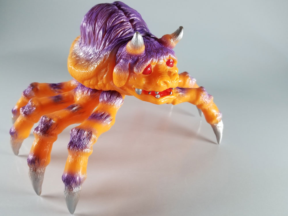 -Inspired by the classic burrowing kaiju, Purplegon features paint sprays inspired by sofubi from the 70's
